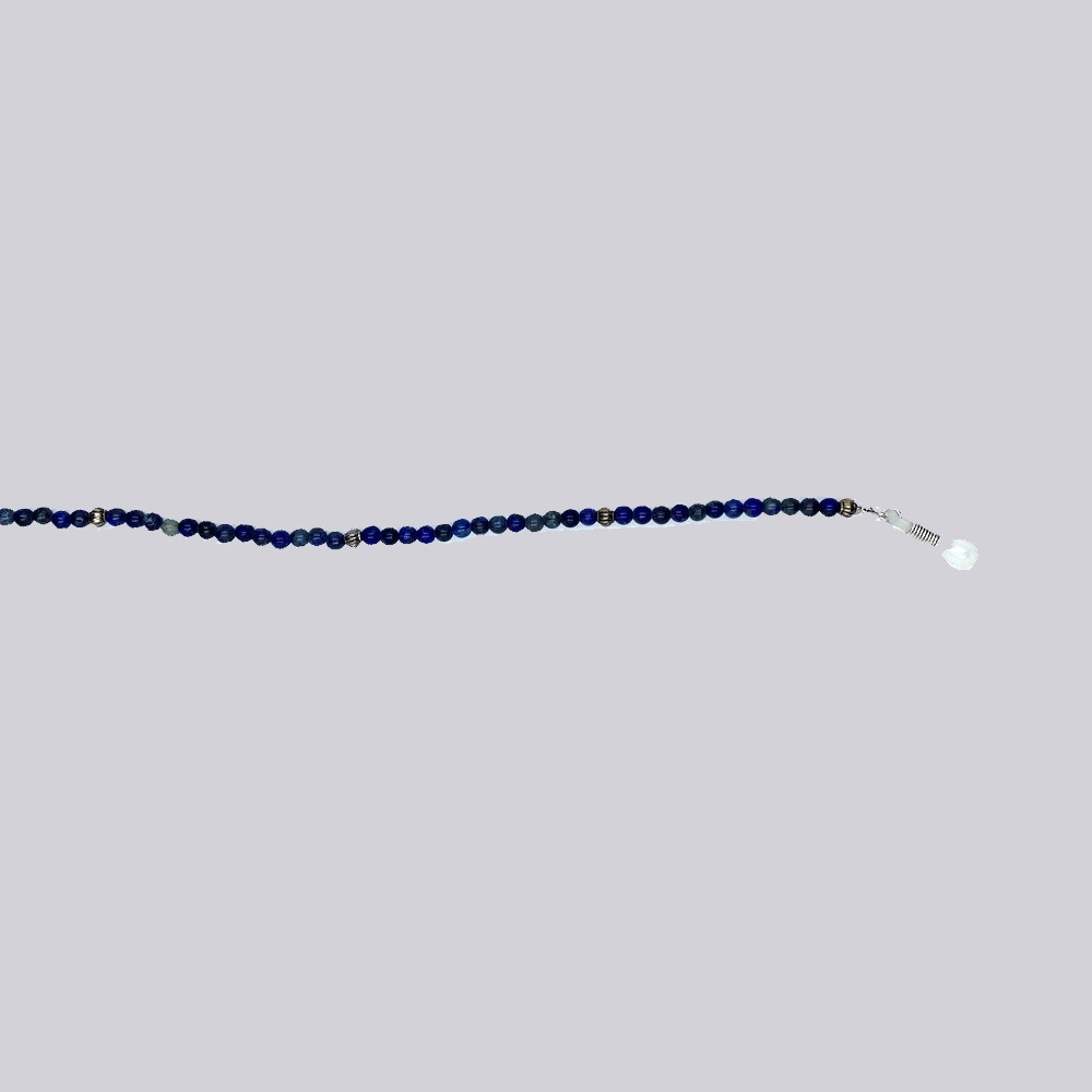 Brillenkette aus Lapislazuli mit Silberfarbenen Metallzwischenperlen.